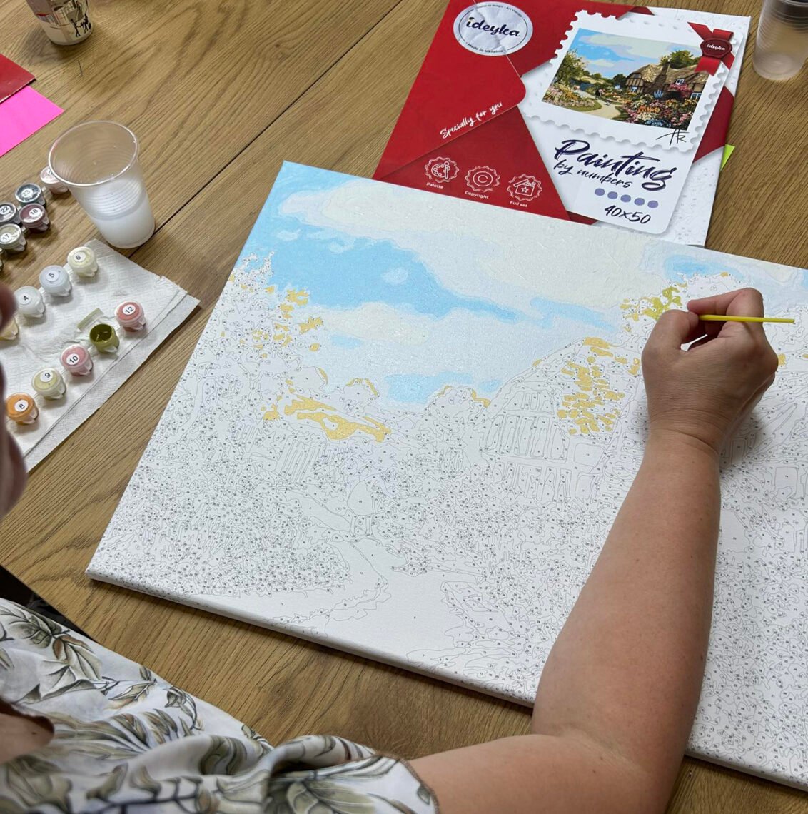 Тож, щоб покращити настрій нашим жінкам ВПО, трохи відвернути їх від буденності, фахівці «Берегині» провели у «Жіночому клубі» групове заняття з арттерапії. Матеріали для створення артоб’єкт були доволі незвичайні – картини по номерах. Кожна з учасниць заходу створювала власноруч справжній витвір мистецтва, здатний прикрасити оселю і стати об’єктом гордості за терпіння, художнє бачення та креативність.