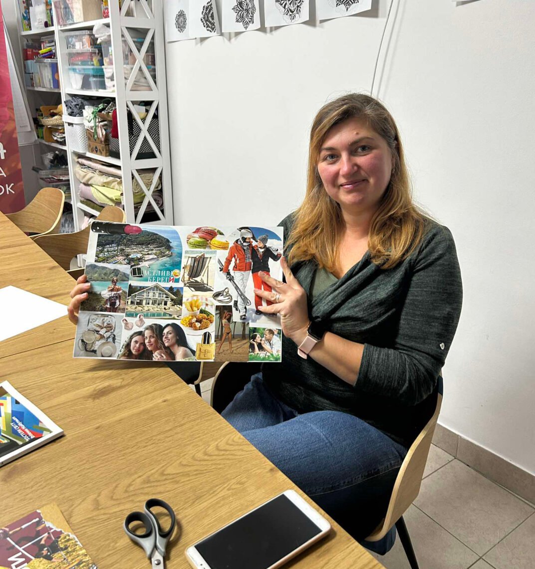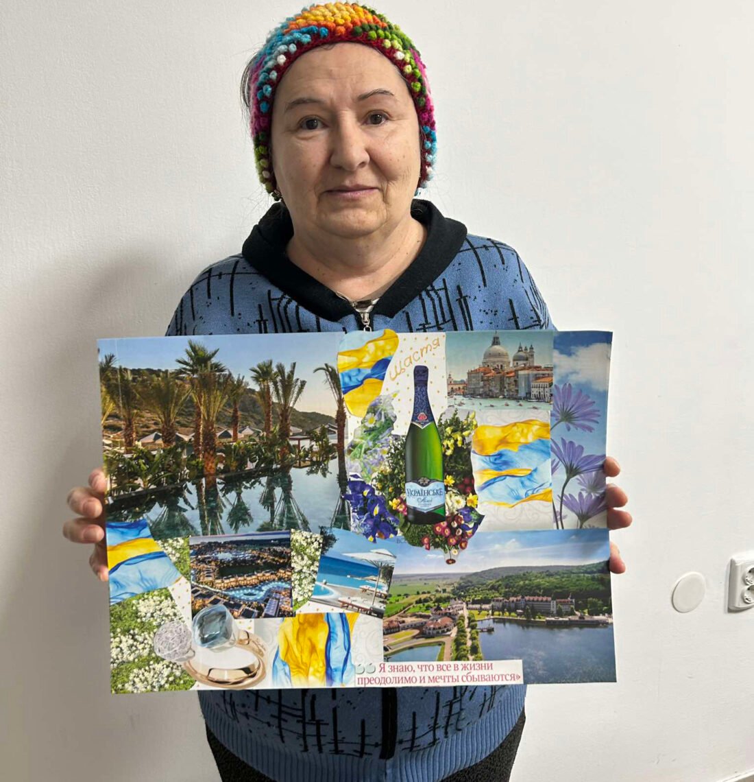 На базі «Жіночого клубу» «Берегині» триває серія занять саме з арт-терапії. Цього разу жінки створювали колаж «Моя мрія», де візуалізували свої плани на майбутнє. У дружньому та безпечному просторі, під жарти та посмішки учасниці жваво експериментували не тільки з матеріалами та фактурами, вони створюючи власну картину свого життя.