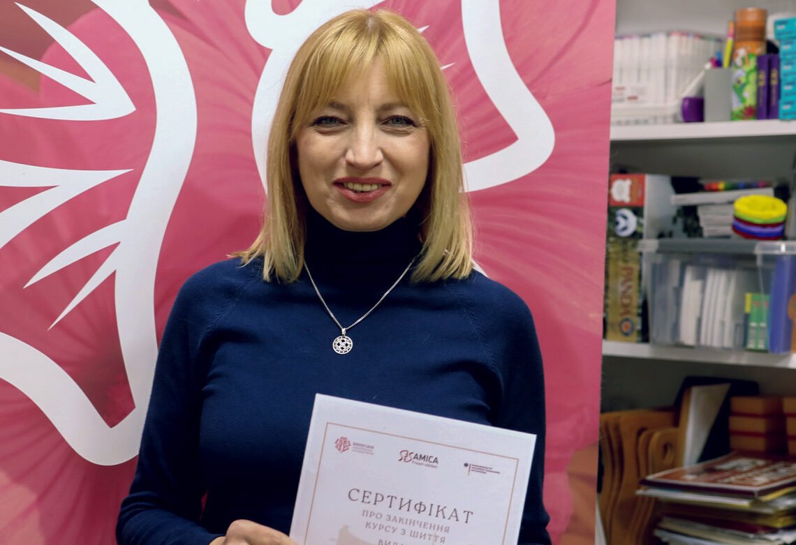 Дізнавшись про курси шиття для жінок-переселенок, які влаштувала МАЖ «Берегиня», одразу на них записалася. Вважала, що це може стати новим напрямком у її житті. Навчання давалося легко, із захопленням, адже навички шиття збереглися ще з юнацтва.