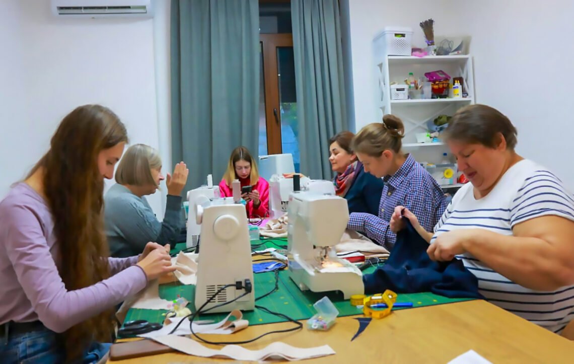 У нашій творчій майстерні триває активна робота: завершується навчання вже четвертої групи учасниць курсів крою та шиття, які організувала для жінок ВПО Маріупольська Асоціація Жінок Берегиня. За цей час учасниці опанували основи швейної справи, навчились будувати викрійки, шити вироби різної складності та вдосконалили технічні навички.